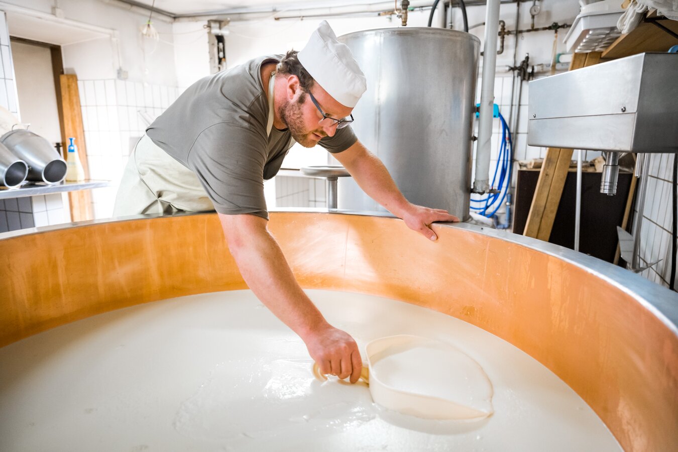 Seine Herstellung folgt einem klaren Rhythmus, der sich seit Generationen kaum verändert hat. Die Milch wird unmittelbar nach dem Melken verarbeitet, schonend erwärmt und mit großer Sorgfalt zum Käselaib geformt. Jeder Handgriff sitzt, jede Entscheidung basiert auf Erfahrung und Wissen, das von Generation zu Generation weitergegeben wird. Genau dieses handwerkliche Können macht den Gailtaler Almkäse g.U. zu einem echten Slow Food Presidio – einem Produkt, das für Qualität, Herkunft und den Erhalt traditioneller Herstellungsweisen steht.